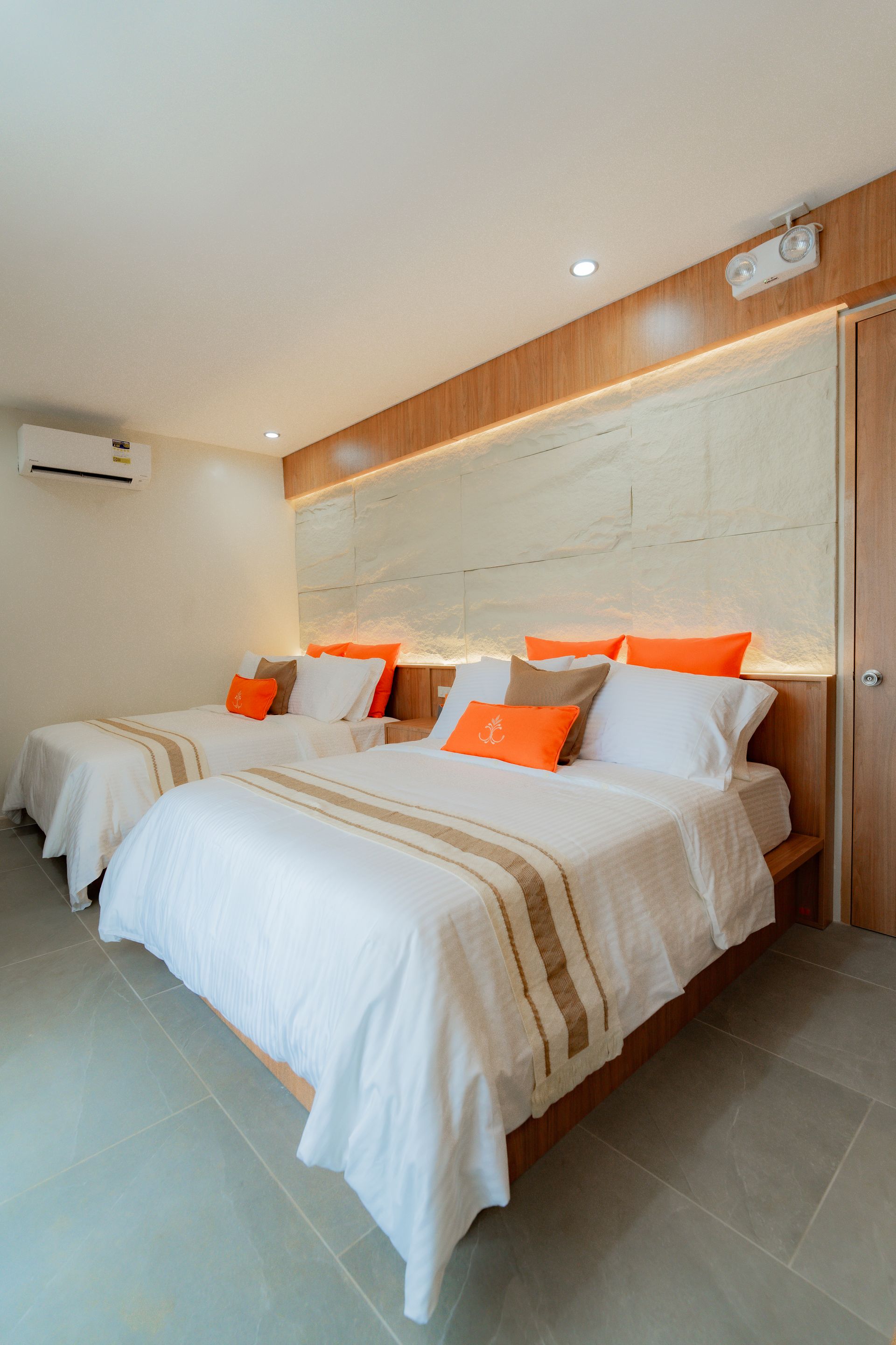 The Family Villa offers a warm and spacious retreat, thoughtfully designed with two queen-sized beds to comfortably host four guests. With its own private bathroom and a view facing the pool, it is a restful setting for families and small groups. The villa can also extend to accommodate up to six guests with extra bedding — a blend of homelike comfort and countryside elegance, made for togetherness.